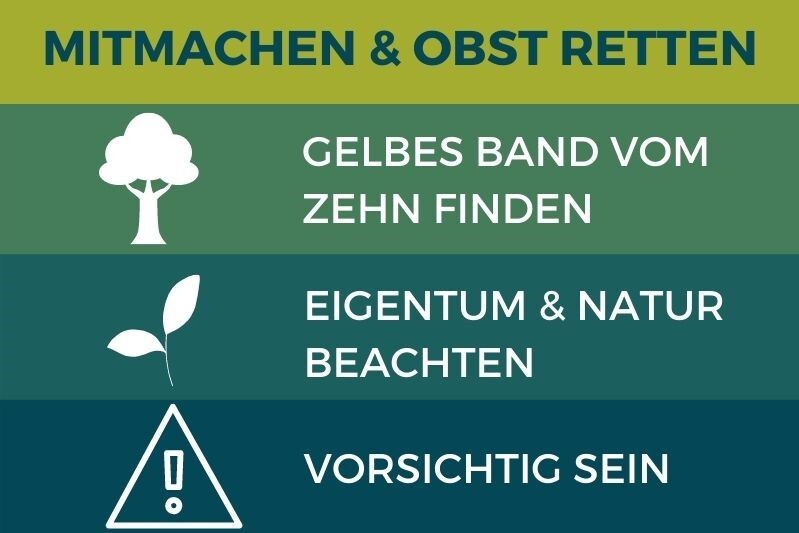 - Ernten Sie nur von Bäumen und Sträuchern mit einem Gelben Band des ZEHN! Dies besteht aus Papier. An den Standorten hängt ebenfalls ein Aktionsplakat es ZEHN, mit Hinweisen zum Ernten. Die registrierten Standorte sind auf der Online-Standortkarte zu finden.